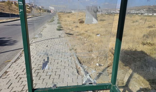 Elazığ'da şehir magandaları belediyeye ait otobüs durağının camlarını kırdı.