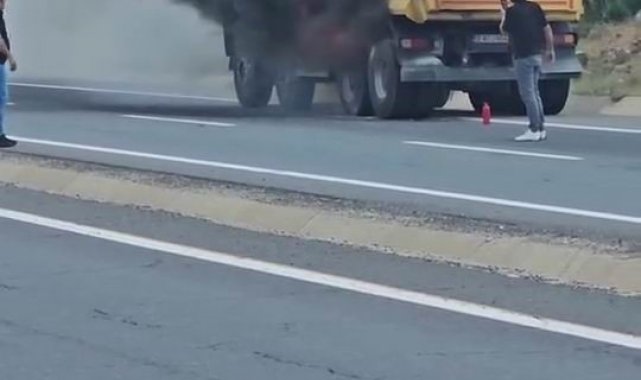 Elazığ'ın Karakoçan ilçesinde, seyir halindeki kamyon alev aldı. Olayda ölen ya da yaralanan olmazken, araçta maddi hasar meydana geldi.