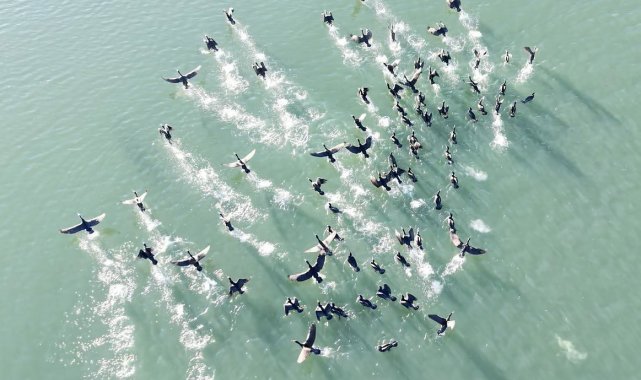 Elazığ'da son günlerde etkisini artıran soğuk hava ve kar yağışı, kent genelinde kış manzaralarını oluştururken, yaban hayatında da dikkat çekici anlara sahne oldu. Cip Baraj Gölü üzerinde dron ile yapılan çekimler sırasında, kara bataklar görüntülendi. Baraj gölü üzerinde bir süre su yüzeyinde koşar adımlarla ilerleyen kara bataklar, daha sonra kanat çırparak havalandı.