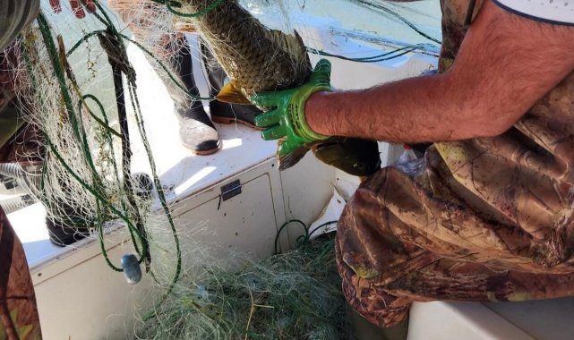 Öte yandan ağlara takılan bin 519 kilo canlı balığın ise doğal yaşam alanına geri bırakıldığı aktarıldı.