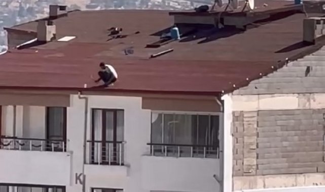 Elazığ'ın Sürsürü Mahallesi'nde işçiler, hiçbir güvenlik önlemi almadan 5 katlı bir binanın çatısında çalıştı. Vatandaşlar tarafından cep telefonu kamerasıyla kaydedilen görüntülerde, işçinin metrelerce yüksekte tedbirsiz şekilde çalıştığı görüldü. O anlar yürekleri ağza getirdi.