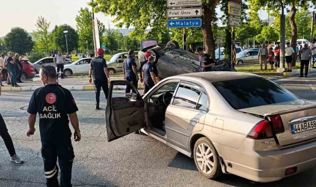 Elazığ'da iki otomobilin çarpıştı kazada biri takla attı. Kazada 2 kişi yaralandı.