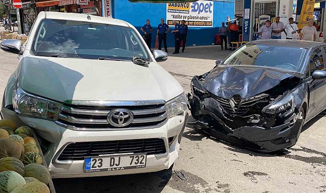 Kaza, merkeze bağlı İcadiye Mahallesi Kuyulu Sokak'ta meydana geldi. Edinilen bilgiye göre, sürücüleri öğrenilemeyen 63 ACR 381 plakalı otomobil, 23 DJ 732 plakalı arazi aracına yandan çarptı. Kazada yaralanan olmazken araçlarda maddi hasar meydana geldi.