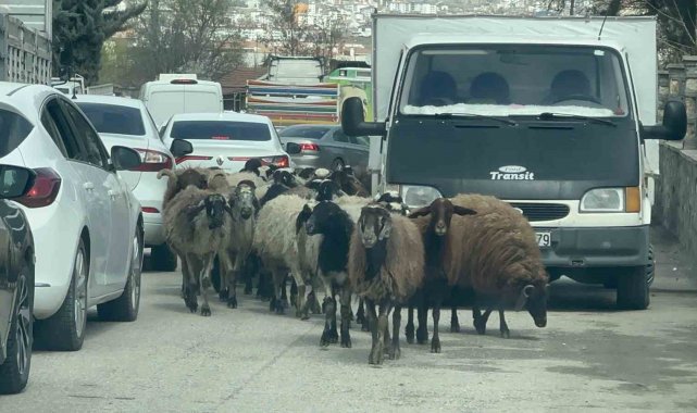 Elazığ şehir merkezinde yoğun trafik sırasında bir koyun sürüsü aniden yola çıkarak araçların durmasına neden oldu. Sürü çobanlarının müdahalesiyle koyunlar güvenli bir şekilde yolun karşısına geçirilirken, o anlar cep telefonu kameralarına yansıdı.