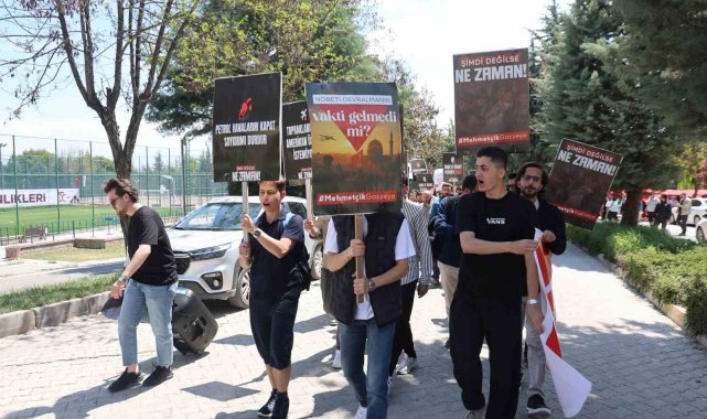 Elazığ'da Fırat Üniversitesi Öğrenci Toplulukları tarafından Gazze için yürüyüş gerçekleştirildi.