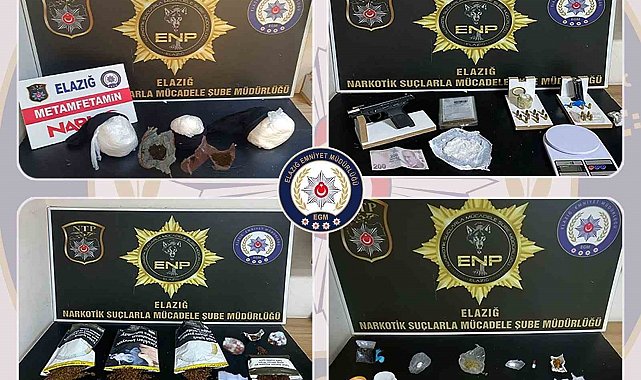 Elazığ'da İl Emniyet Müdürlüğü Narkotik Suçlarla Mücadele Şube Müdürlüğü ekipleri tarafından uyuşturucu madde ticareti, sevkiyatı ve kullanımının engellemesine yönelik operasyonlar devam ediyor. Bu çerçevede ekipler, kontrol noktasında şüphelendikleri aracı durdurarak arama yaptı. Narkotik köpeğinin de katıldığı aramada, araç teybinin arkasına gizlenmiş 5 parça halinde 2 kilogram 548 gram metamfetamin maddesi ele geçirildi. Ayrıca ekipler tarafından 27-29 tarihleri arasında yapılan operasyonlarda ise 16 parça halinde 467,68 gram sentetik kannabinoid maddesi, 2 parça halinde 18,65 gram esrar, 52 adet sentetik ecza maddesi, 1 adet ruhsatsız tabanca, tabancaya ait 17 adet fişek ve 1 adet hassas terazi ele geçirildi.