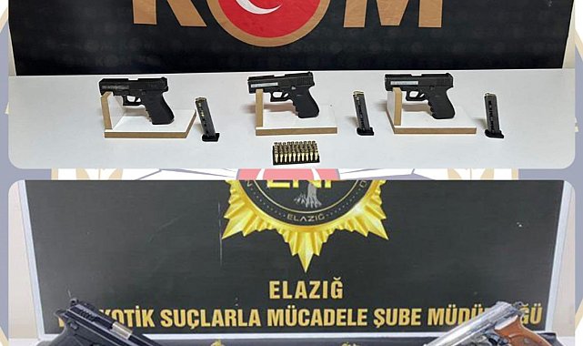 Elazığ Cumhuriyet Başsavcılığı koordinesinde İl Emniyet Müdürlüğü KOM ve Narkotik Suçlarla Mücadele Şube Müdürlükleri ekipleri tarafından, 6136 Sayılı Kanuna Muhalefet ve uyuşturucu madde ticaretinin önlenmesine yönelik çalışma gerçekleştirildi. Bu kapsamda, Elazığ'da Hozat Garajı'nda faaliyet gösteren bir eğlence mekanı ile çevre illerden kente gelen şüpheli bir tıra operasyon düzenlendi. Yapılan aramalarda, iki parça halinde 530 gram esrar, 32 gram kokain ile 5 adet ruhsatsız tabanca ve tabancalara ait 94 adet fişek ele geçirildi. Operasyonlarda gözaltına alınan 2 şüpheliden 1'i adli kontrol şartıyla serbest bırakılırken, diğer şüpheli çıkarıldığı mahkemece tutuklanarak cezaevine gönderildi.