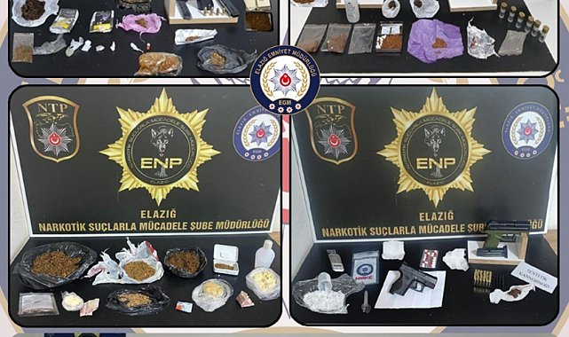 Elazığ Cumhuriyet Başsavcılığı koordinesinde İl Emniyet Müdürlüğü Narkotik Suçlarla Mücadele ve Asayiş Şube Müdürlüğü tarafından uyuşturucu ile mücadele çalışmaları sürüyor. Bu çerçevede son 20 gün içerisinde uyuşturucu madde kullanan ve uyuşturucu madde ticareti yapan şahıslara yönelik yapılan operasyonlarda; 39 parça halinde 1 kilo 570 gr sentetik kannabinoid maddesi, 7 parça halinde 57.40 gram metamfetamin maddesi, 8 parça halinde 41 gamr esrar maddesi, 2 bin 650 adet sentetik ecza maddesi, 3 adet ruhsatsız tabanca ve tabancalara ait 51 adet fişek, 1 adet ruhsatsız pompalı tüfek ve 6 adet kartuş ile 1 adet hassas terazi ele geçirildi.