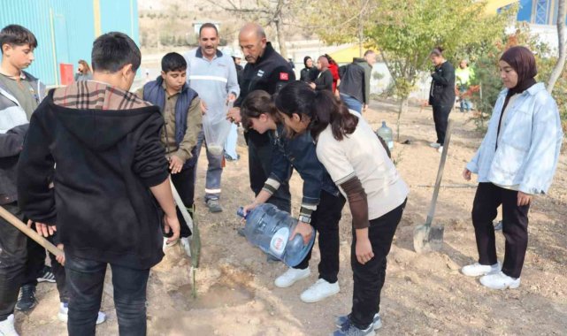Elazığ'da Seza Çimento personeli ve ilkokul öğrencileri bin 111 fidanı toprakla buluşturdu.