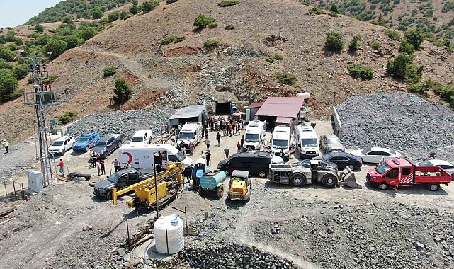 Elazığ'daki göçükte çalışmalar 4 saattir sürüyor: maden ocağı dron ile görüntülendi