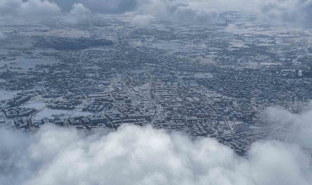 Elazığ'da sabah saatlerinde etkili olan ve gün boyunca aralıklarla süren kar yağışı, kenti beyaza bürüdü. Harput'tan dron ile havadan kaydedilen görüntülerde Elazığ kent merkezinin karla kaplandığı net şekilde görüldü. Sis ve bulutların üzerinde çekilen dron görüntüleri ise görsel şölen sundu. Ortaya çıkan manzaralar, İzlanda ve Norveç'in meşhur kış manzaralarını geride bırakırken, "Burası ne İzlanda ne Norveç, burası Elazığ" dedirtti.