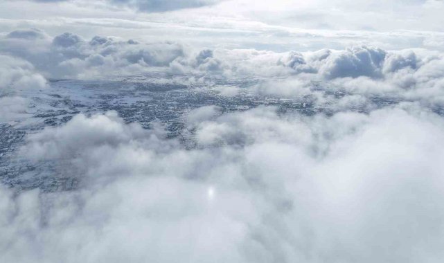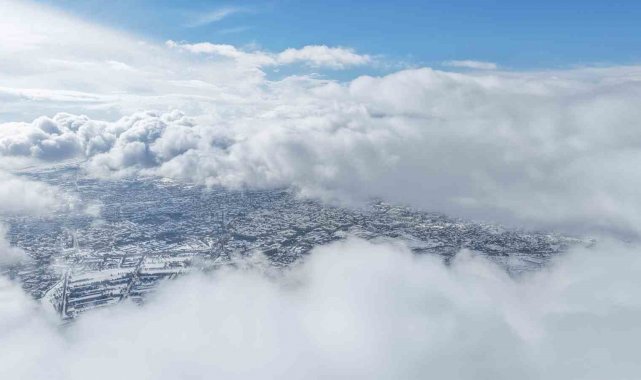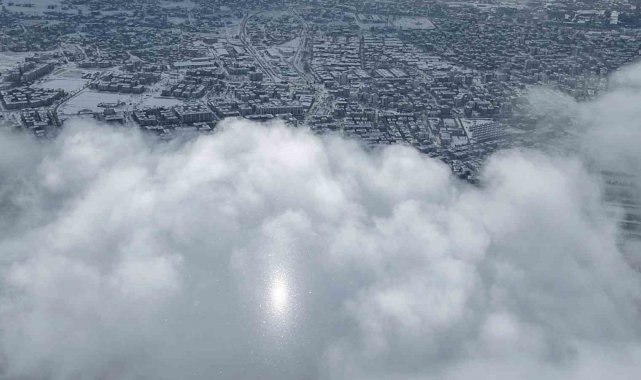 Harput'tan dron ile çekilen görüntülerde Elazığ kent merkezi karla birlikte beyaza büründü. Sis ve bulutların üzerindeki manzaralar, İzlanda ve Norveç'i aratmadı.