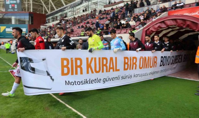 İçişleri Bakanlığı tarafından motosiklet kazalarının önlenmesi amacıyla başlatılan 'Bir Kural Bir Ömür' Eylem Planı kapsamında, Elazığ İl Emniyet Müdürlüğü Trafik Denetleme Şube Müdürlüğü tarafından hazırlanan farkındalık afişi, futbol sahasında vatandaşlarla buluştu. Çimentaş Elazığspor ile Somaspor arasında oynanan karşılaşma öncesinde düzenlenen seremoniye futbolcular, trafik kurallarına uyulmasının önemini vurgulayan afişle çıktı. Bu anlamlı etkinlik, motosiklet sürücülerinin ve tüm trafik kullanıcılarının bilinçlendirilmesi adına büyük ilgi gördü.