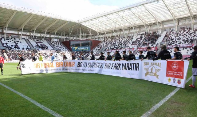 İçişleri Bakanlığının 'Bir Kural Bir Ömür' Eylem Planı kapsamında Çimentaş Elazığspor-Somaspor maçı öncesinde futbolcular, trafik kurallarının önemini vurgulayan afişle sahaya çıktı.