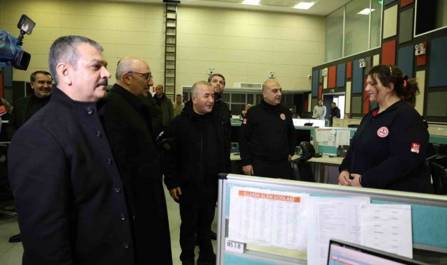 Elazığ İl Protokolü, Güvenlik ve Acil Durumlar Koordinasyon Merkezi'ni (GAMER) ziyaret etti. Ziyarette, görevli personelin yeni yılı kutlanarak çalışmalarında başarılar dilendi. Elazığ Valisi Numan Hatipoğlu, AK Parti Elazığ Milletvekilleri Prof. Dr. Erol Keleş, Ejder Açıkkapı ve Mahmut Rıdvan Nazırlı, Elazığ Belediye Başkanı Şahin Şerifoğulları, İl Jandarma Komutanı Tuğgeneral Alpaslan Doğan ile İl Emniyet Müdürü Adnan Karayel, yılbaşı gecesi için alınan güvenlik ve asayiş tedbirlerini yerinde inceledi. Vali Hatipoğlu, merkezde yürütülen faaliyetlere ilişkin yetkililerden bilgi alarak yapılan çalışmaları takip etti.