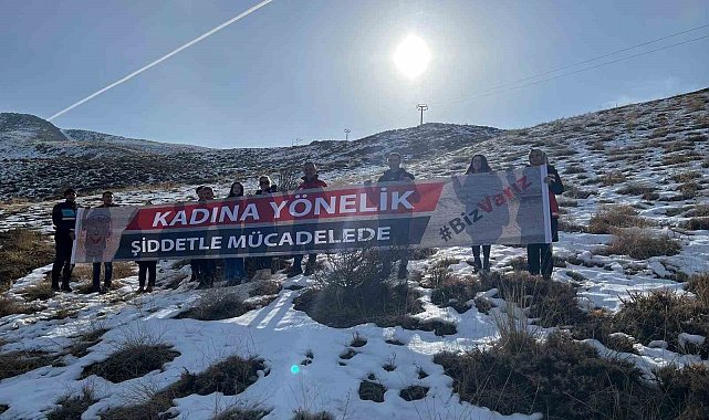 Elazığ'ın 2 bin 347 metrelik Hazarbaba zirvesinden şiddete karşı uyarı mesajı