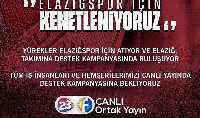 Elazığ Ticaret ve Sanayi Odası Konferans salonunda 30 Nisan Çarşamba günü saat 21.00'de başlayacak ve Kanal Fırat ile Kanal 23 Televizyonları tarafından canlı yayınlanacağı belirtildi. Kampanyaya Elazığlıların duyarsız kalmayacağını ifade eden Başkan Alan, "Elazığspor, bu şehrin en güzide, en köklü ve en önemli tanıtım markasıdır. Özellikle son haftalarda aldığı galibiyetlerle şampiyonluğa yaklaşan Elazığspor için düzenlediğimiz destek kampanyasına tüm hemşehrilerimizin katılımlarını bekliyoruz" dedi.
