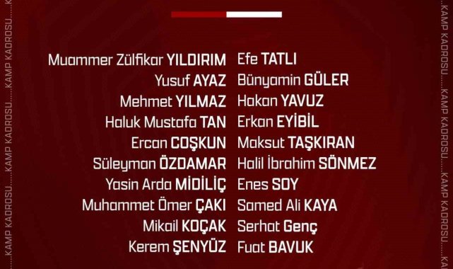 Elazığspor, TFF 2. Lig Beyaz Grup 13. haftasında Beykoz Anadoluspor ile deplasmanda karşılaşacak. Teknik Direktör Mustafa Sarıgül, kadroya Muammer Zülfikar Yıldırım, Efe Tatlı, Yusuf Ayaz, Bünyamin Güler, Mehmet Yılmaz, Hakan Yavuz, Haluk Mustafa Tan, Erkan Eyibil, Ercan Coşkun, Maksut Taşkıran, Süleyman Özdamar, Halil İbrahim Sönmez, Yasin Arda Midiliç, Enes Soy, Muhammet Ömer Çakı, Samed Ali Kaya, Mikail Koçak, Serhat Genç, Kerem Şenyüz ve Fuat Bavuk'u aldı.