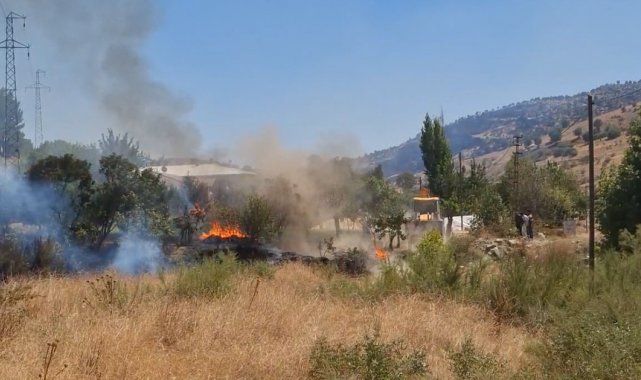 Adıyaman'ın Sincik ilçesinde elektrik direğinde meydana gelen patlama sonrası yangın çıktı.