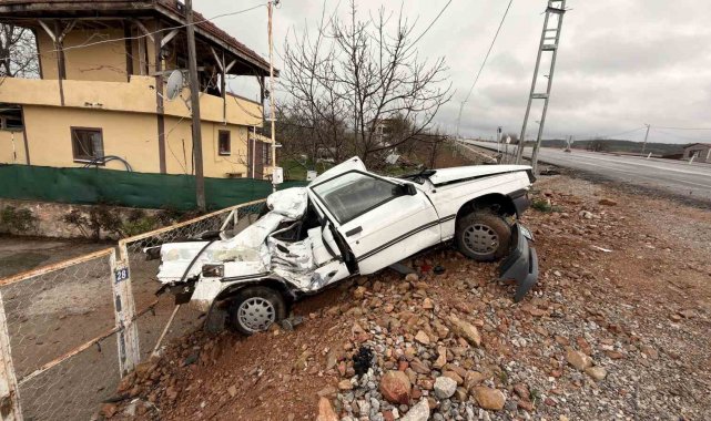 Elektrik direğine çarpan otomobil hurdaya döndü