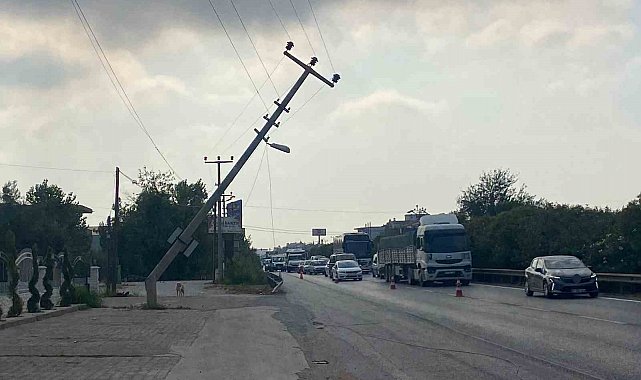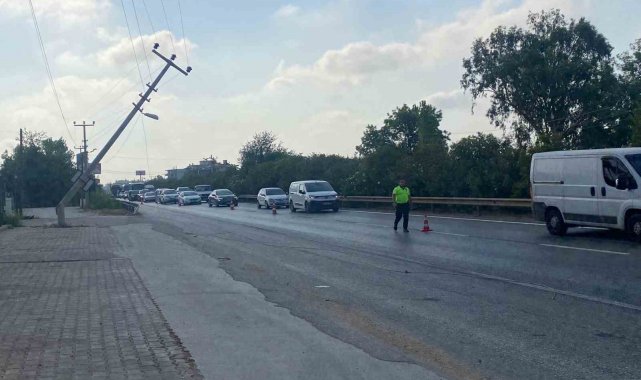 Antalya'nın Serik ilçesinde tırın çarptığı elektrik direğinde devrilme riski oluşunca trafik ekipleri yolda güvenlik önlemi aldı. Ekipler yaptığı araştırmada ise tırın sürücüsünü olaydan farklı yerde araç içinde uyurken buldu.