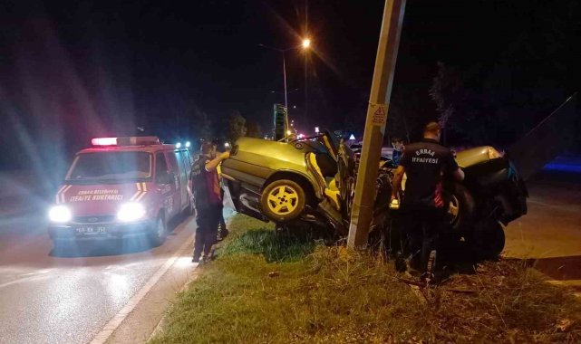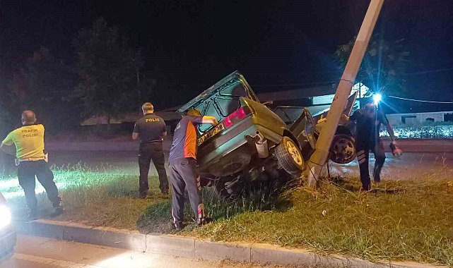 Elektrik direğine çarpan Tofaş hurdaya döndü