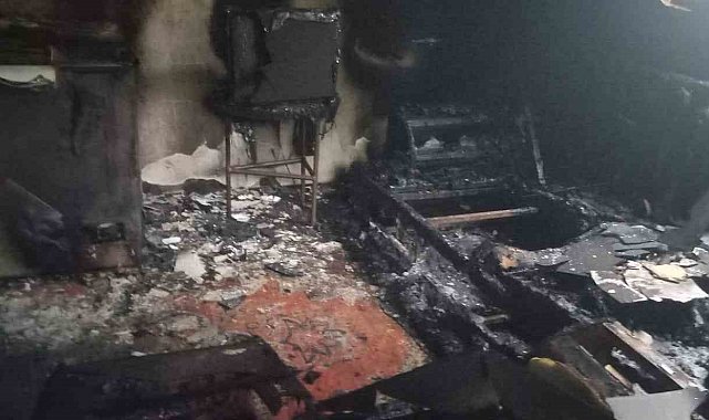 Elektrik kontağından çıkan yangında iki katlı ev kullanılamaz hale geldi