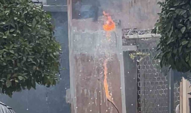 Hatay'ın İskenderun ilçesinde aşırı sıcaklar nedeniyle genleşen elektrik tellerinde meydana gelen patlamalar kameraya yansıdı.