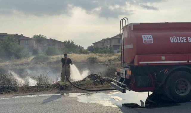 Olay, Beyciler Mahallesi'nde meydana geldi. Alınan bilgilere göre, Mavi Hilal evlerinin önünde bulunan elektrik hatlarına kuş çarptı. Çarpan kuş sebebi ile hatlarda şase meydana gelince otluk alanda yangın çıktı. Rüzgarın etkisi ile alevler hızla büyüyünce bölgeye Düzce Belediyesi İtfaiye Müdürlüğü ekipleri sevk edildi. Kısa süre içerisinde 4 dönümlük alanı etkisi altına alan alevlere ekipler hızla müdahalede bulunarak yangını kontrol altına alıp evlere ulaşmasını engelledi. Yangında 4 dönüm otluk alan küle döndü.