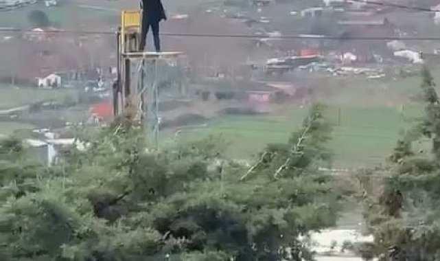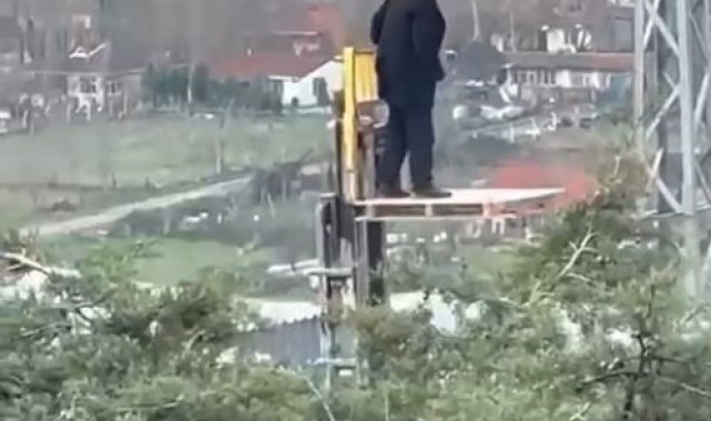 İstanbul'un Arnavutköy ilçesinde bir şahıs, yetersiz güç geldiğini düşündüğü bir nokta nedeniyle elektrik kablolarının arızalı olduğunu düşündü. Forklift yardımıyla tırmandığı elektrik kablolarını onarmaya çalıştı. İlginç anlar cep telefonu kamerasıyla böyle görüntülendi.