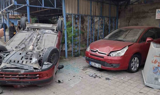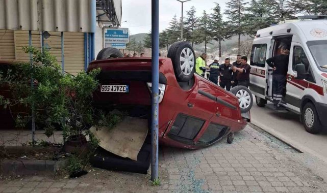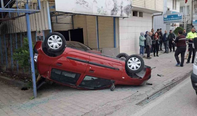 Elektrik trafosuna çarpan araç ters döndü: 2 yaralı