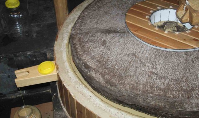 İşletmede, elektrik ve makineye sıfır bağımlılıkla, sadece su gücü ve taş teknolojisiyle üretim yapılarak çevre dostu bir model sunuluyor.