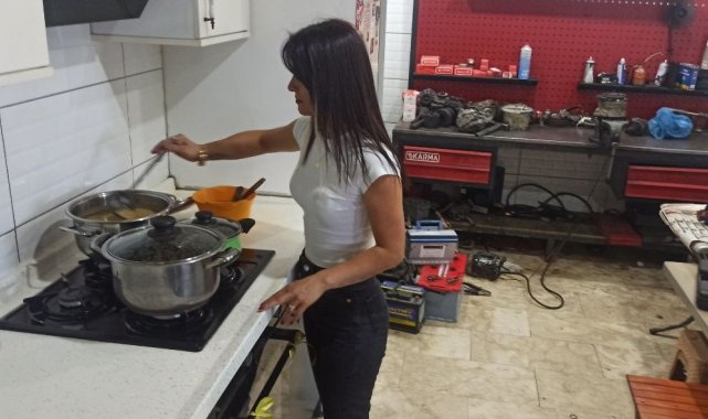 Elektrikçi dükkanına kadın eli değdi: Hem araba tamir ediyor hem de bebek büyütüyor