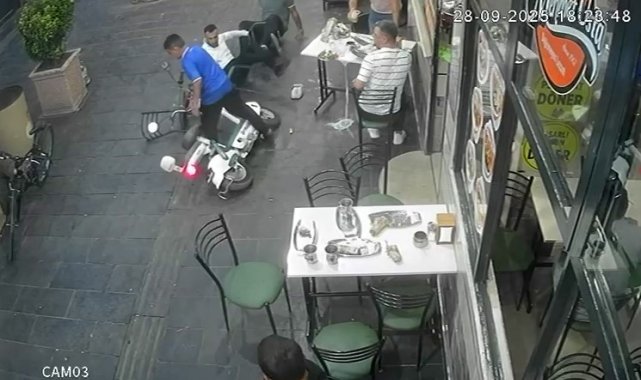 Gaziantep'te geçtiğimiz pazar günü seyir halindeyken kontrolden çıkan elektrikli bisiklet, bir lokantada yemek yiyenlerin arasına daldı. O anlar güvenlik kamerasına yansıdı. Lokantanın sahibi Enes Yıldırım, o anları İhlas haber Ajansı'na anlattı.