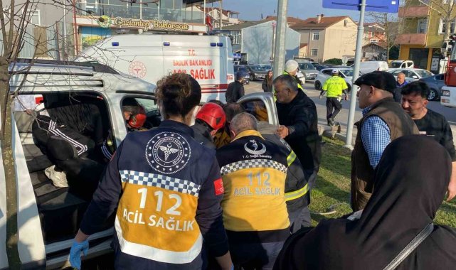 Olay, dün saat 16.30 sıralarında Sarımeşe ışıklarda meydana geldi. Elektrikli bisikletten düşerek yaralanan 5 aylık hamile Malika Gadeova için olay yerine sağlık ekipleri sevk edildi. Yaralıyı alan sağlık ekipleri hastaneye doğru yola çıktı. H.D. kontrolündeki 41 ANG 584 plakalı ambulans, ışıklarda M.N.K. idaresindeki 41 AYD 947 plakalı hafif ticari araç ile çarpıştı. İhbar üzerine olay yerine çok sayıda ambulans, polis ve itfaiye ekipleri sevk edildi. Kısa sürede olay yerine gelen sağlık ekipleri, önce hamile kadını ambulansla hastaneye kaldırdı. Kazada yaralanan ambulans şoförü, 2 acil tıp teknisyeni ve hafif ticari araç sürücüsü M.N.K.'nin annesi, sağlık ekiplerince sedyeye alınarak hastaneye kaldırıldı. M.N.K. ise Kocaeli Büyükşehir Belediyesi İtfaiye Daire Başkanlığı ekipleri tarafından kurtarılarak sağlık ekiplerine teslim edildi. Yaralı 5 kişi çevre hastanelere kaldırılarak tedavi altına alındı.