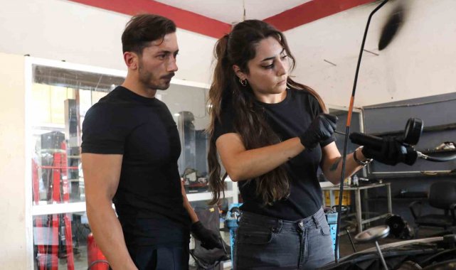 Sümeyra Yıldırım, eşinin eleman sıkıntı çektiğini ve daha sonra kendisinin eşi ile beraber çalıştığını belirterek, "Benim bu sektöre hevesim vardı. Eşimin yanına gidip gelerek ondan bir şeyler öğrenmeye başladım. Bu nasıl olur nasıl yapılır diye sorular sormaya başladım. İlk olarak çırak olarak getir götür yaptım. Daha sonrasında eşim eleman sıkıntısı yaşıyordu. Günümüzde de bu büyük bir problem. Beni eğiteceğini söyledi ve yavaş yavaş işe başladık. Bir şeyler daha üstüne koyarak bugünlere geldik. Bu sektörün yeniliğe ihtiyacı olduğu için kendimizi sürekli yenileyip eğitiyoruz. Güç gerektiren durumlarda eşimle beraber yapmak zorunda kalıyorum ama onun dışında motorları baştan aşağı dağıtıp tekrar toplayabiliyorum. Eşim de bana yardımcı oluyor" dedi.
