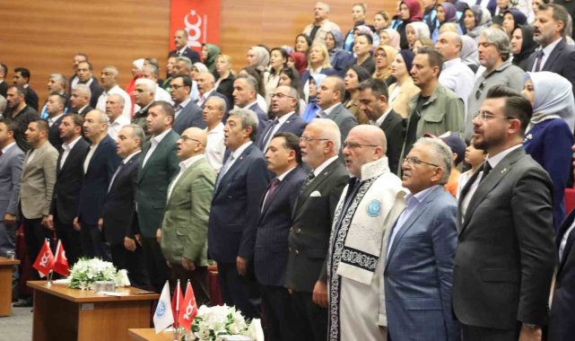 Kayseri Üniversitesi 15 Temmuz Yerleşkesi Kongre ve Kültür Merkezi'nde düzenlenen Fahri Doktora Tevcih Töreni, saygı duruşunda bulunulması ve İstiklal Marşı'nın okunmasının ardından başladı. Törenin açılış konuşmasını yapan KAYÜ Rektörü Prof. Dr. Kuruluşu Karamustafa, üniversitenin kuruluşunda emeği geçenlere teşekkür ederek, "Yarım asırlık güçlü bünyeden Kayseri Üniversitesi doğmuştur. Üniversitemiz şehrimizin farklı bir kulvarında önemli bir misyon edinmiştir. Bunda başta Cumhurbaşkanımız olmak üzere üniversitemizin kurulmasında emeği geçen sayın bakanımıza teşekkür ediyorum. Erciyes Üniversitesi gibi farklı bir yapıda mesleki ve teknik yükseköğretimde sanayi, ticaret, üretim, Ar-Ge olan bu şehirde, şehrin bu altyapısıyla nitelikli insan kaynağını en iyi şekilde yetiştirerek güzel ülkemiz Türkiye'mizin uluslararası boyutta sürdürülebilir rekabet üstünlüğü elde edebilecek potansiyeli olan, bunu da her gün daha iyiye anlayışıyla devam eden üniversitemizin oluşumunda herkesin ciddi katkıları olmuştu. Emeği geçen herekse teşekkür ederim" dedi.