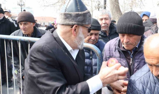 "Elmacı Dede" şehit polislerin hayrına elma dağıttı