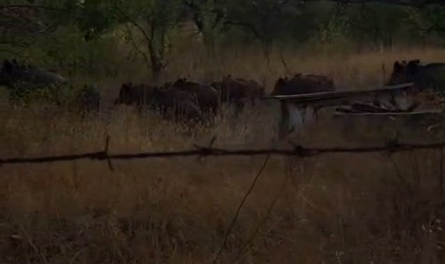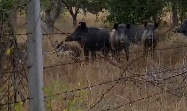 Elmadağ ilçesinde bir tarlaya domuz sürüsü girdi. Durumu fark eden çoban, ses çıkararak domuzları uzaklaştırmak istedi. Korkan sürü kaçtı. Yaşananlarsa cep telefonu kamerasına yansıdı.