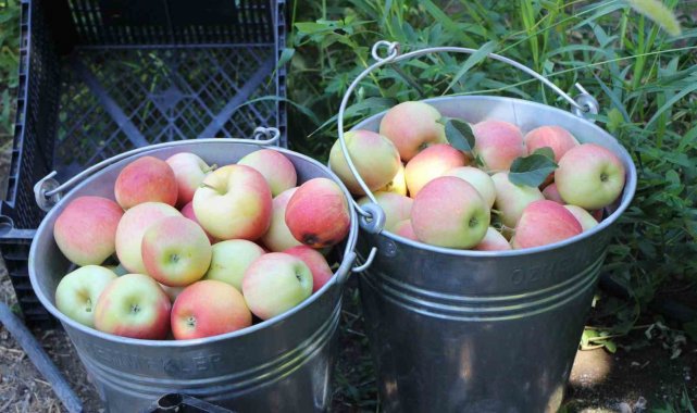 Elma çiçeklerini aşırı soğuktan dumanlama ve bitki antifriziyle korumayı başaran 30 yaşındaki çiftçi Furkan Tokmak, ağaçlarının yazın aşırı sıcaklarından etkilenmemesini de bahçesini sarıp uzayan yabani otların oluşturduğu nemlenme sayesinde sağladı. Şehirde meyvelerin felaketten etkilenmediği ender bahçelerden olan 18 dekarlık bahçede yetiştirilen rengarenk elmaların hasadı başladı.