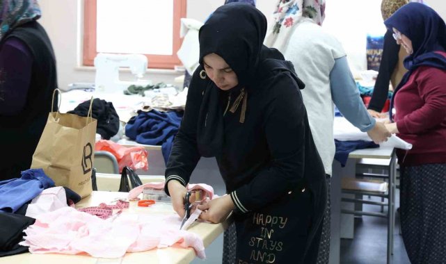 Elmalı ATASEM dikiş atölyesinde kadınlar üreterek kazanıyor