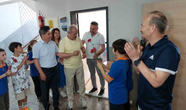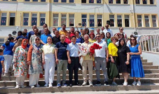 Emekli olan 45 yıllık öğretmene okulda uğurlama töreni