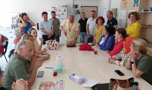 Okul Müdürü Seyit Ahmet Akgül, Tiken'e çiçek takdim ederken, Müdür Yardımcısı Mesut Önal da kendisine madalya taktı. Öğrenciler ve öğretmenlerin katılımıyla doğum günü pastası kesilerek Tiken'in emekliliği kutlandı.