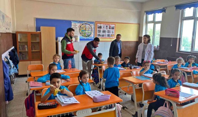 Daha sonra sınıflarda öğrencilerin soruları yanıtlanarak sağlıklı gıda tüketimi konusunda bilgilendirme yapıldı ve meyve tüketiminin önemine dikkat çekmek amacıyla öğrencilere muz ikram edildi.