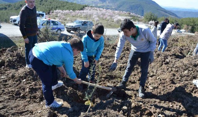 Kütahya'nın Emet ilçesinde düzenlenen zeytin dikme etkinliğinde yüzlerce fidan toprakla buluşturuldu.