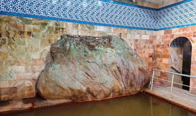Emet Yeniceköy şifa hamamı havuzunda bulunan devasa kaya ile ilgi odağı