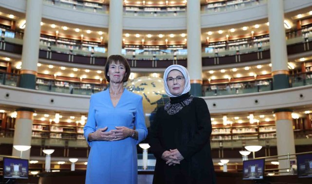 Cumhurbaşkanı Recep Tayyip Erdoğan'ın eşi Emine Erdoğan, Türkiye'ye resmi ziyaret gerçekleştiren Almanya Başbakanı Friedrich Merz'in eşi Charlotte Merz ile Cumhurbaşkanlığı Millet Kütüphanesi'ni ziyaret etti.