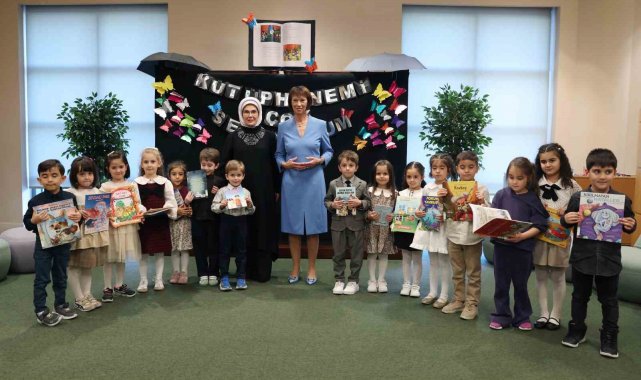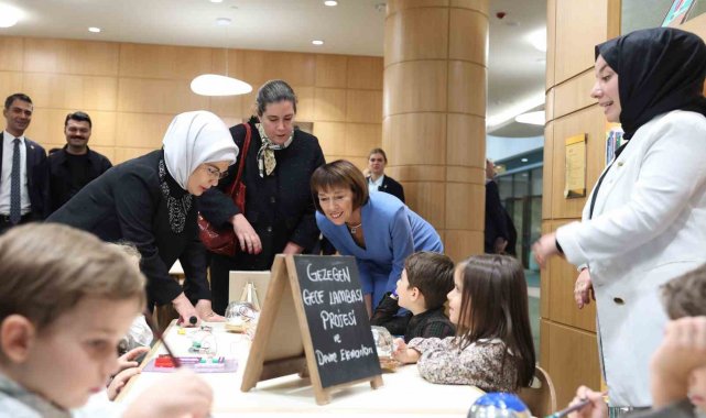 Emine Erdoğan ve Charlotte Merz, Nasreddin Hoca Çocuk Kütüphanesi'ne geçerek burada çeşitli etkinlikler yapan çocuklarla bir araya geldi. Çocukların, "kodlama" dersi kapsamında yaptıkları basit elektrik devresi çalışmalarını ve gezegen şeklindeki gece lambası tasarımlarını inceleyen lider eşleri, çocuklarla etkinliklerine ilişkin sohbet etti. Lider eşleri, çocukların, oyun hamurlarından yaptıkları gezegenler ve dünyanın katmanları çalışmalarını da inceledi. Çocuklar, Emine Erdoğan ve Charlotte Merz'e, ayın yüzeyini gösteren tablo çalışmalarını hediye etti.