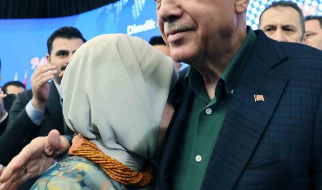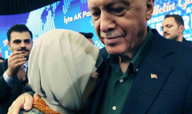 Salondaki duygu yoğunluğu kameralara da yansıdı. Konuşmasını tamamlayan Cumhurbaşkanı Erdoğan, eşi Emine Erdoğan'a yönelerek sarıldı. O anlar salonda bulunan davetliler tarafından uzun süre alkışlandı.