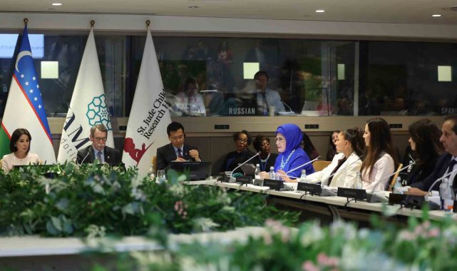 Emine Erdoğan, Özbekistan Cumhurbaşkanının eşi ve Zamin Vakfı Başkanı Ziroat Mirziyoyev'in ev sahipliğinde, BM Genel Merkezi'nde BM Genel Kurulu Bulaşıcı Olmayan Hastalıklar (BOH) 4. Yüksek Düzeyli Toplantısı kapsamında düzenlenen "Kanser ve Diğer Yıkıcı Hastalıkları Olan Çocukların Hayatta Kalma İhtimallerini Arttırma ve Acılarını Azaltma Amaçlı Küresel Hareket" başlıklı yan etkinliğe katıldı.